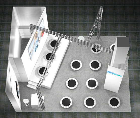 Bei der Ausrichtung des Standes wurden die Laufrichtung der Messebesucher und die Gesamtlage des Standes in der Halle berücksichtigt.